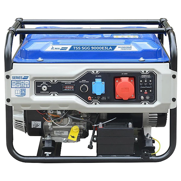 Бензиновый генератор TSS SGG 9000E3LA с номинальной мощностью 8 кВт - это трехфазная установка профессионального класса, которую можно успешно использовать как в роли страховки от перебоев с электричеством, так и в качестве главного источника энергии.