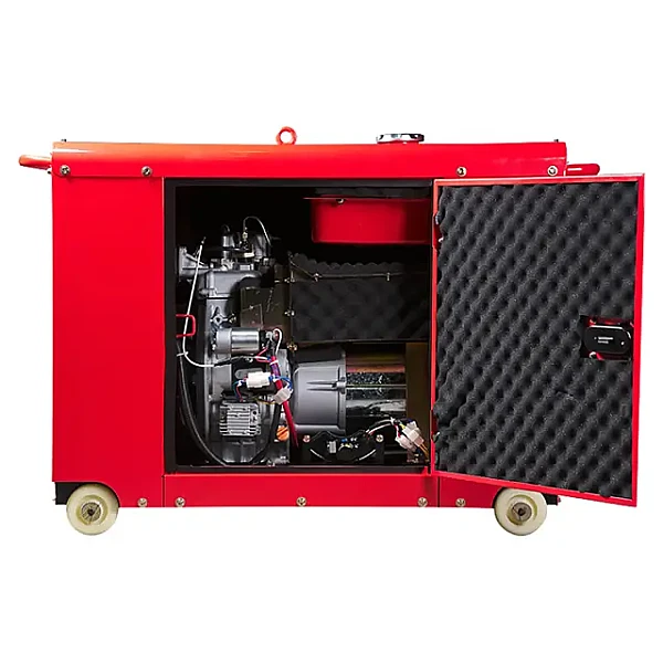 Дизельный трехфазный генератор максимальной мощностью 8 кВт с воздушным охлаждением в шумозащитном кожухе . Уровень шума менее 71 дБ (7м). Оснащен электростартером для легкого запуска. Отлично подходит в качестве источника электроэнергии при резервировании сети в загородном доме, торговой точке, на небольшом предприятии, а также в качестве источника питания оборудования высокой мощности на стройплощадке.
