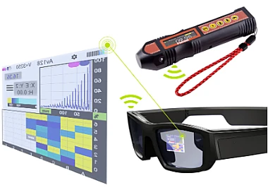 ЭМА толщиномер ЕМ4000 по Вашему желанию может быть дополнен носимыми смарт-очками. Носимые смарт-очки позволяют производить измерения ЭМА толщиномером ЕМ4000 в труднодоступных местах, где считывание показаний прибора с дисплея не представляется возможным или затруднено. Показания в этом случае отображаются на стекле смарт-очков и их всегда видно оператору.