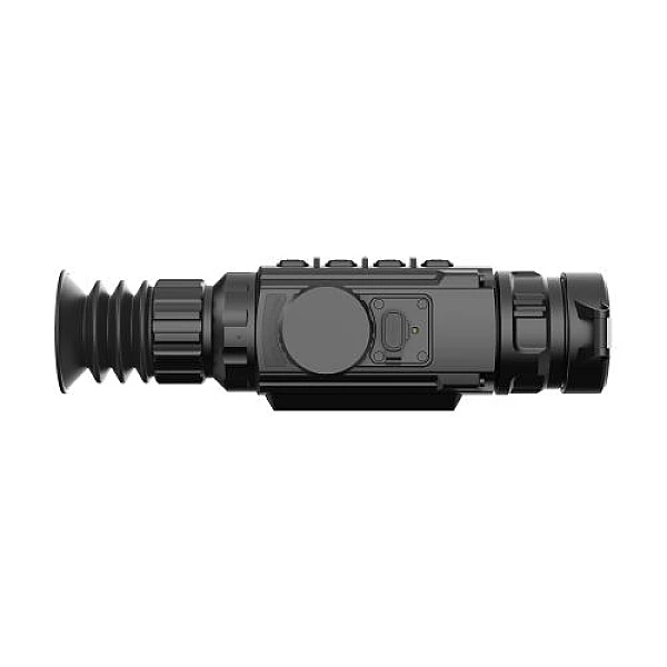 Окулярная часть получила обновление дисплея, который теперь выполнен по технологии AMOLED HD и имеет больший физический размер для комфортного наблюдения и произведения выстрела. Обвновлённое ядро поддерживает 8 прицельных сеток и 4 цвета на каждую, что бы вы могли настроить прицел под себя и производить точные выстрелы. Встроенный видео и фото рекордер позволяет записывать видео и фото на встроенную память 32Gb или использовать удалённую запись по средствам Wi-Fi на вашем мобильном устройстве на удалении от тепловизионного прицела.