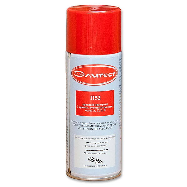 Пенетрант Элитест П52 обеспечивает 2-й уровень чувствительности по ГОСТ Р ИСО 3452-2, II и III классы чувствительности контроля по ГОСТ 18442 (выявление дефектов с шириной раскрытия от 1 до 100 мкм).