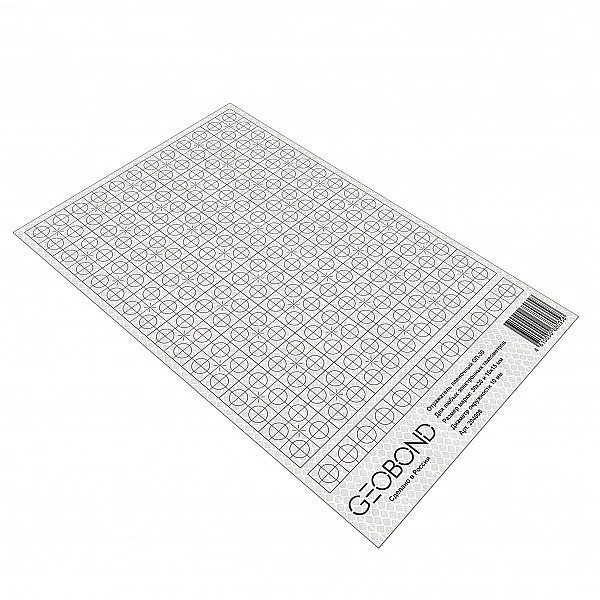 Пленочные отражатели Geobond ОП-30 используются с тахеометрами любых производителей. Изготовлены отражатели из новейшей высококачественной пленки призматического типа со сверхвысокой световозвращающей эффективностью. Коэффициент отражения данной пленки RA составляет 600 (кд/лк/ м2), что позволяет производить измерения на расстояниях до 500 метров.