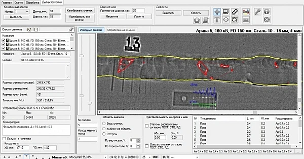 - Выявленные дефекты классифицируются и отбраковываются в соответствии с выбранным НД;